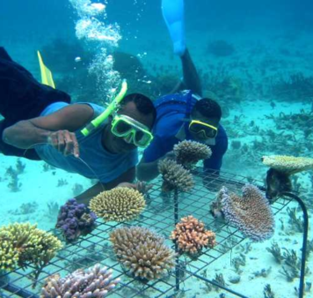 Corals for Conservation aims for long term sustainability by empowering the community, particularly youth and women, through training, awareness, and opportunities to accelerate coral reef and fish recovery. It will be carried out through restoration and bleaching resistance, revenue generation via ecotourism, and education and outreach.