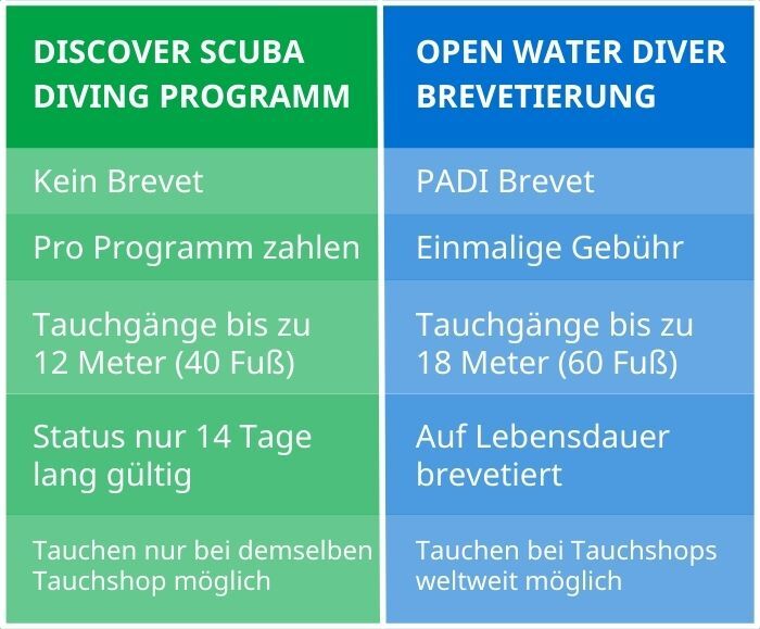 Ein Leben voller Entdeckungen und Abenteuer auf unserem blauen Planeten warten nach deinem PADI Open Water Diver Tauchschein auf dich. Mit dem bekanntesten Tauchschein der Welt triffst du Menschen, die das Meer so lieben wie du und erlebst die Wunder der Unterwasserwelt!