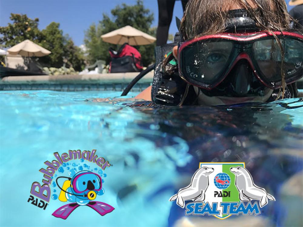The Bubblemaker program is an experience program in a pool or confined water that is as fun as it sounds–a chance for kids to blow bubbles underwater while scuba diving!