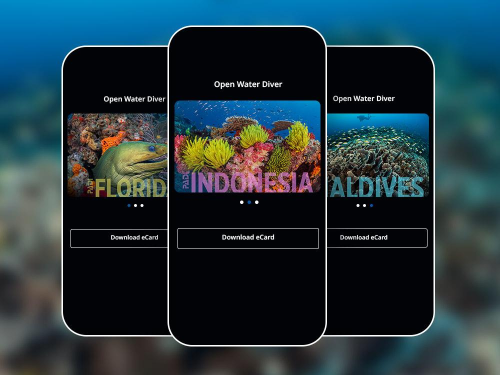 Las PADI eCards son alojadas, administradas y mostradas a través de la PADI App, disponible gratuitamente en la App Store de Apple o en Google Play.